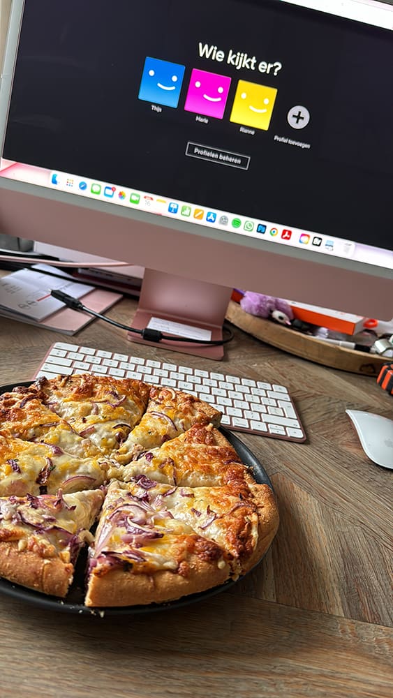 Thijs was laat thuis en ik at snel een pizza tussendoor.