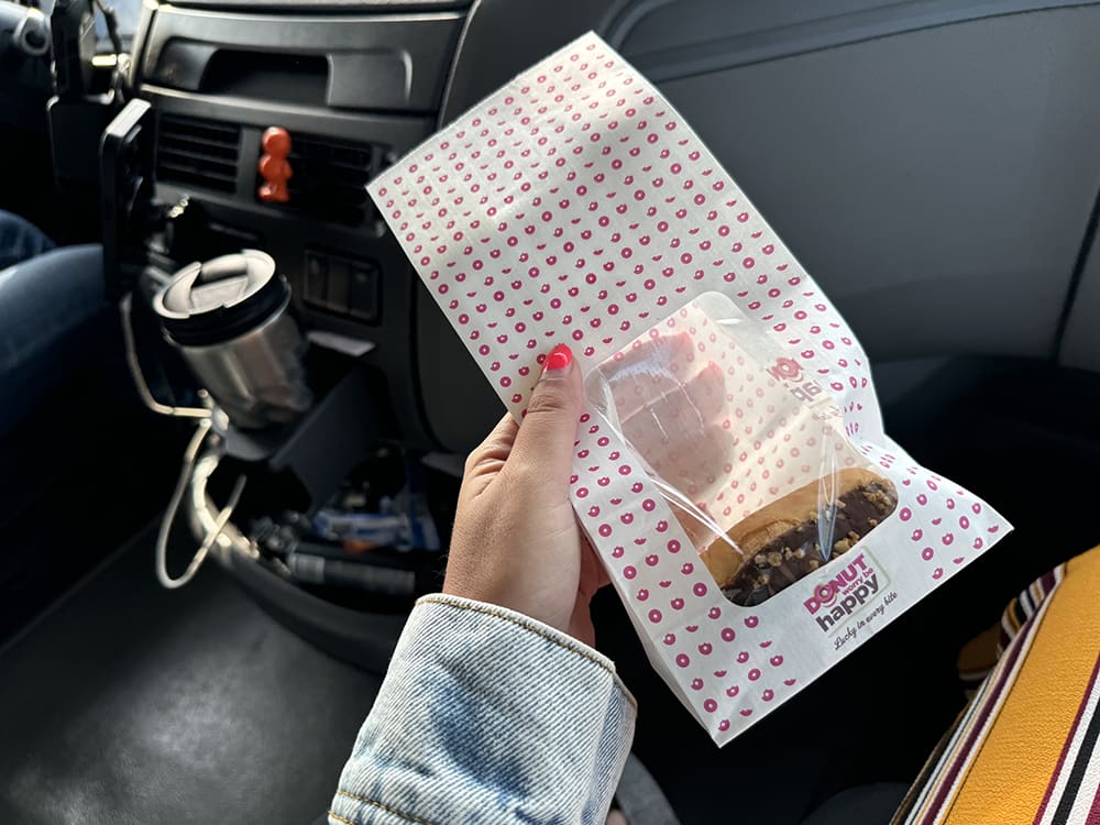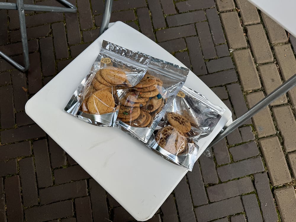 Moeders had lekkere koekjes gehaald. We hebben gelijk al wat klanten gehad die ochtend. En gezellig kletsen met Leandra.