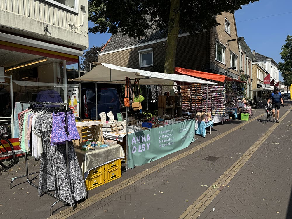 Donderdag (15 augustus). We hebben markt in Aalten. We staan weer op hetzelfde plekje als de week ervoor. Dat is wel fijn.