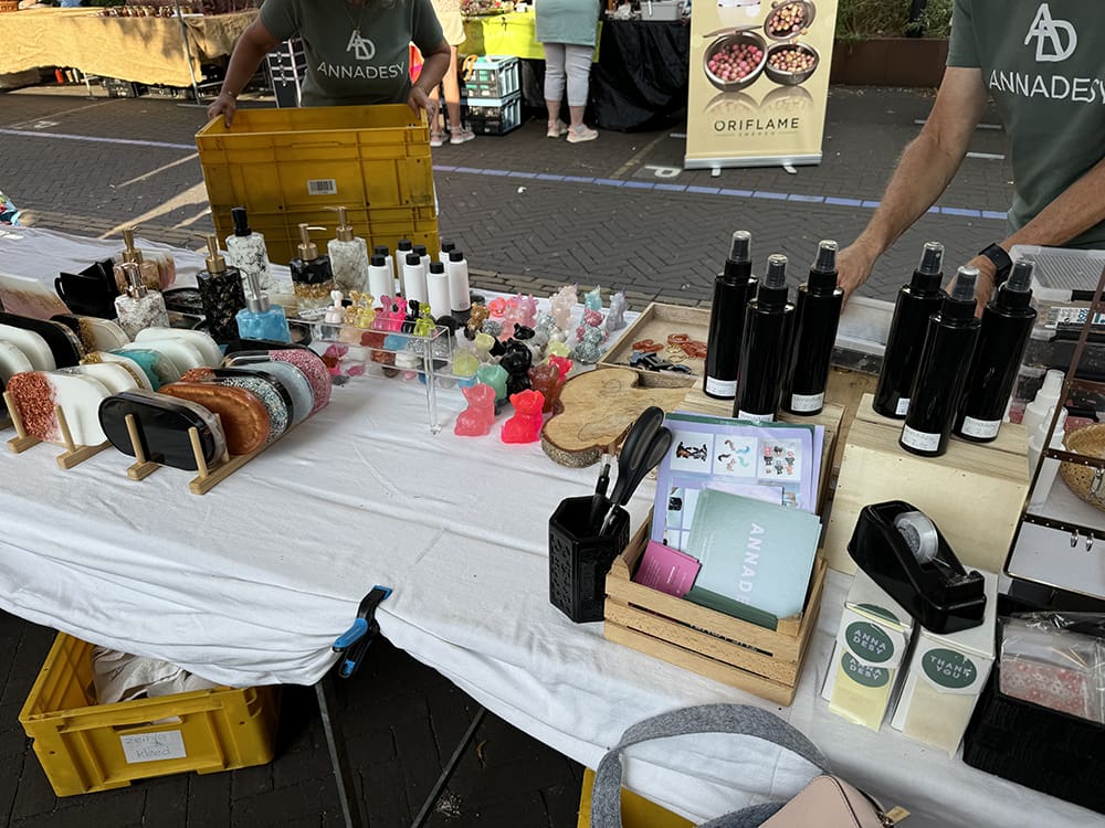 Zondag (18 augustus). In de ochtend heb ik gesport en daarna spullen gepakt voor de markt. We stonden weer op de mini markt bij Landal.