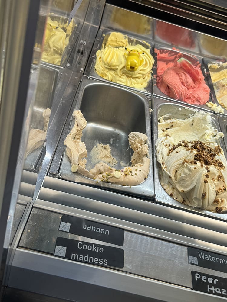 En nog een ijsje gehaald in de stad daar. Ze hadden er Pikachu ijs, haha, geniaal.