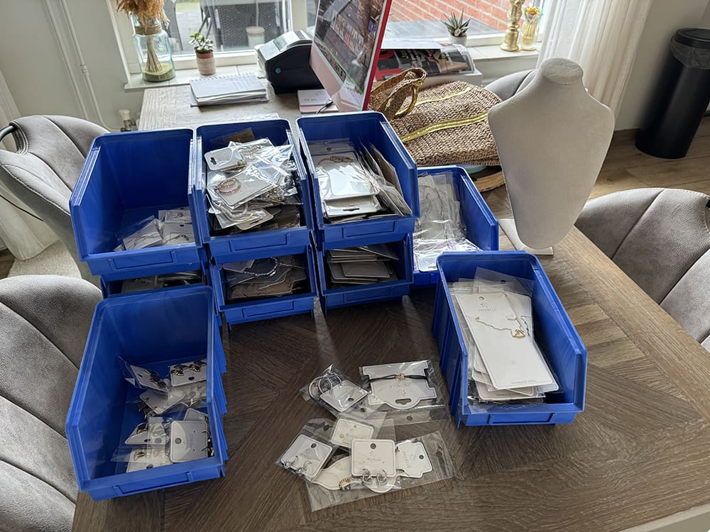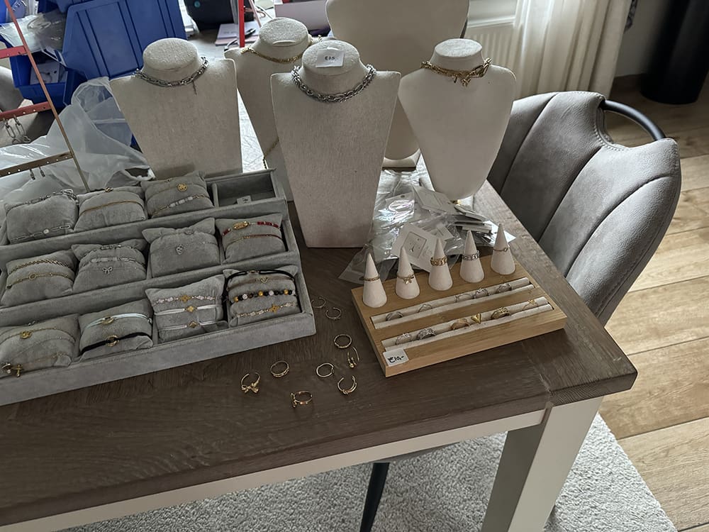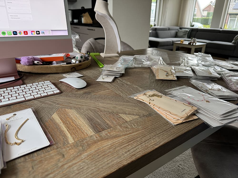 Daarna begon mijn klus: alle sieraden op de site zetten. Hier ben ik de hele middag mee bezig geweest.