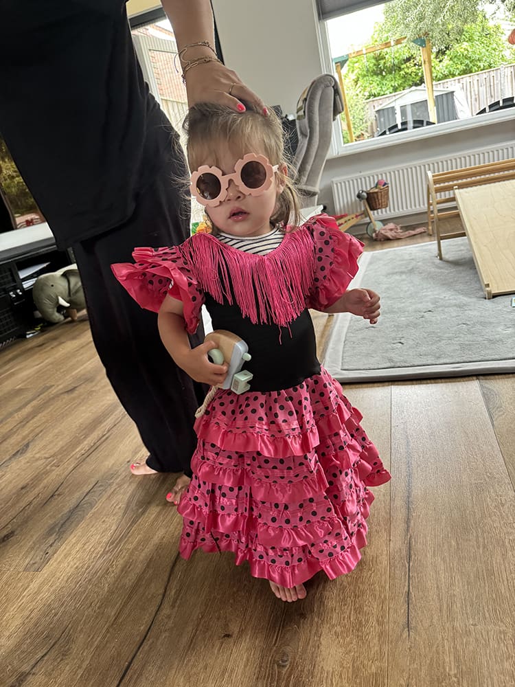 Uit Spanje had ik een Spaans jurkje meegenomen. Die wilde ze meteen aan. Zo schattig!