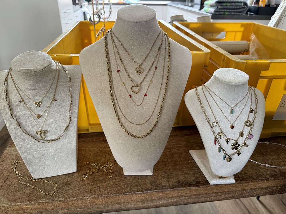 En onze nieuwe sieraden te orderen. We hebben voorlopig een goeie voorraad.