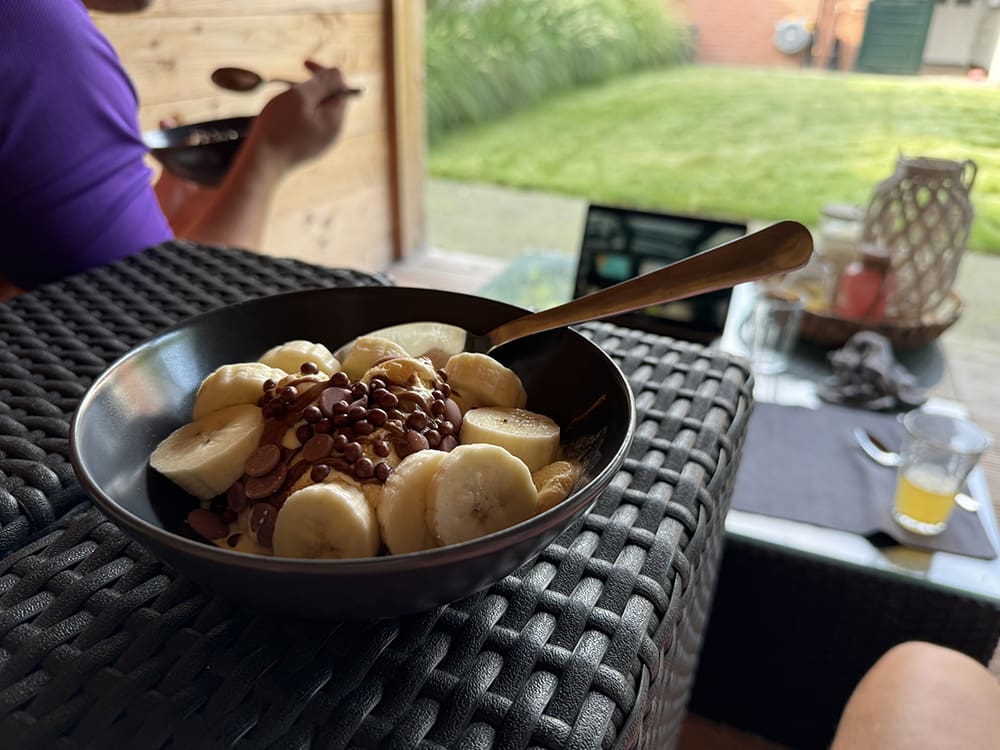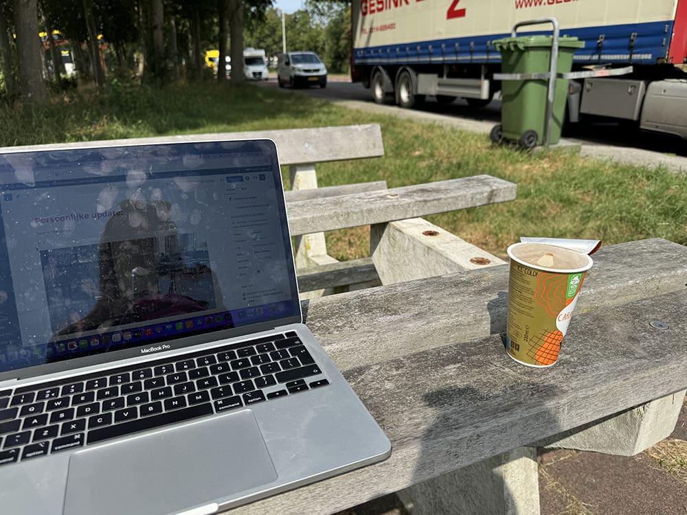 Tijdens de pauze heeft Thijs een dutje gedaan en zat ik lekker buiten achter de laptop.