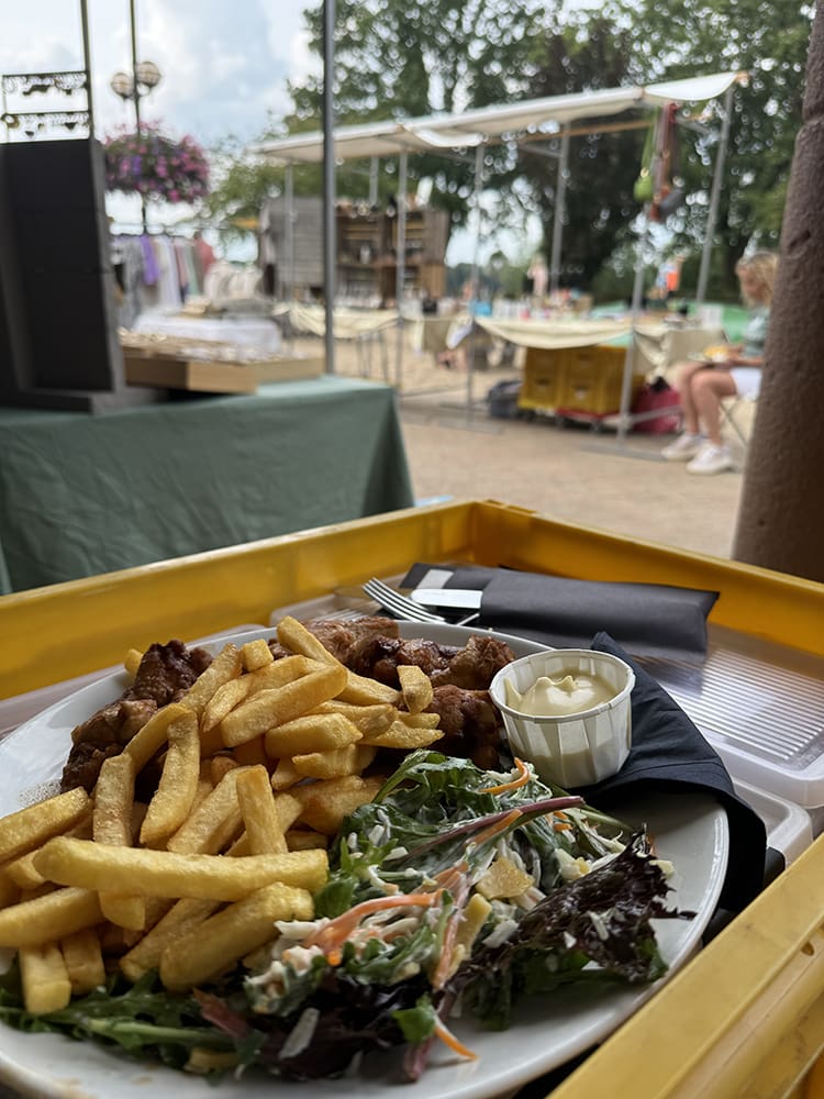 Lekker wat eten en ondertussen mensen kijken. Want echt kopers liepen er niet helaas.
