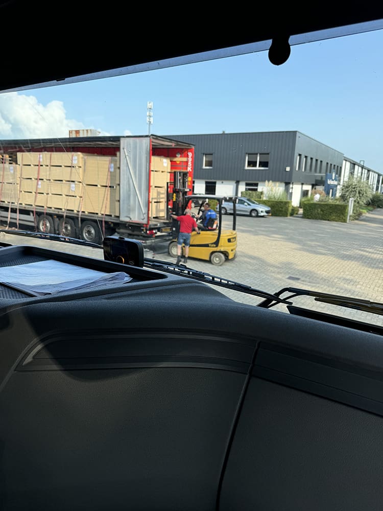 Leuk om te zien hoe dat lossen altijd gaat. Die mensen daar vonden het allemaal raar een vrouw te zien volgens mij op de werkplaats. Werd de hele tijd aangestaard, haha.
