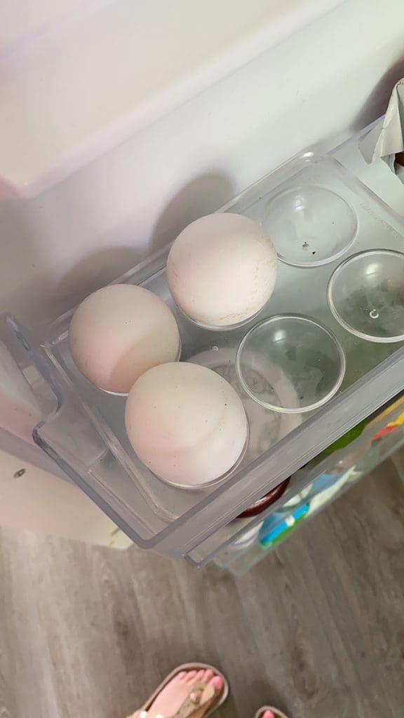 Ik zou gezellig bij mijn ouders gaan lunchen. Ik appte: ‘ik neem eitjes mee.’ Alleen zie ik dat we er nog maar drie hebben. Alledrie eentje, haha. Komt uit een goed hart dan, zeggen we.