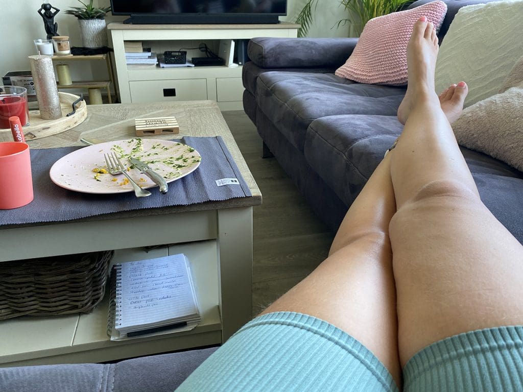 Ik was moe na die dag. Beentjes hoog op de bank.