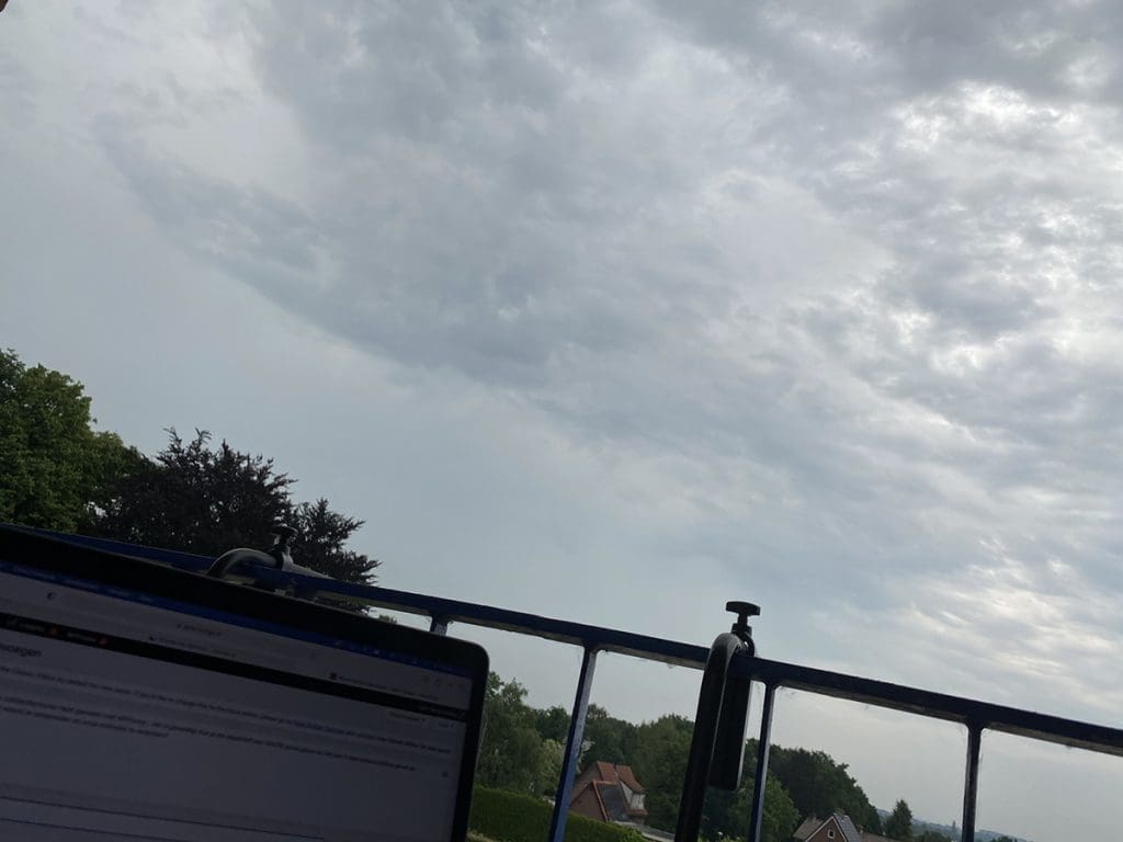 Ik heb gesport in de ochtend en daarna zat ik op het balkon. Even afkoelen met deze bewolking.
