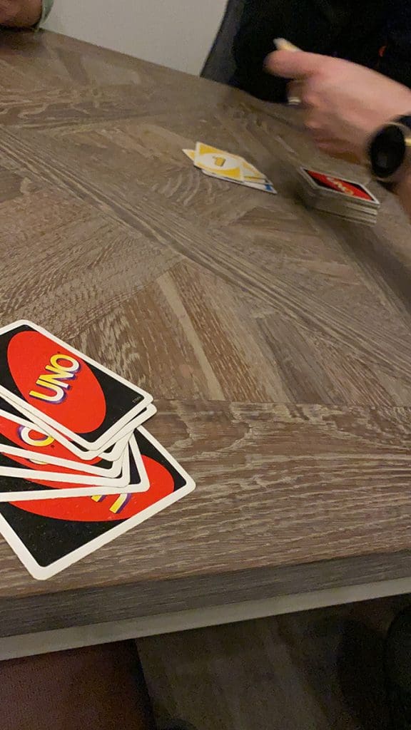 Na het eten (weer Kippie natuurlijk) deden we nog wat potjes Uno. Ook erg lachen.