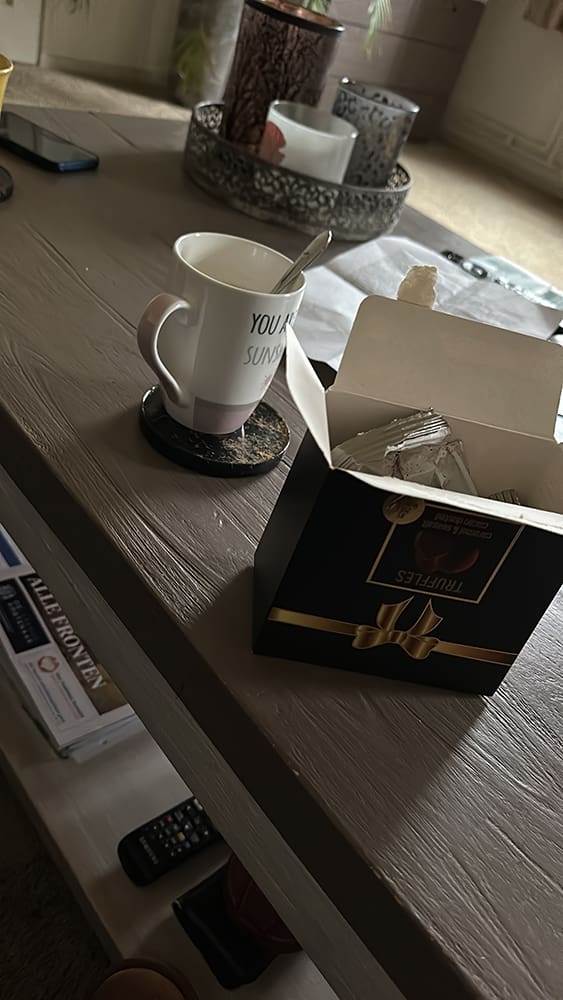Tussendoor lekker koffie drinken. Onze overbuurvrouw Roos van Mady By Sis was erg gezellig. We hebben veel met haar gekletst.