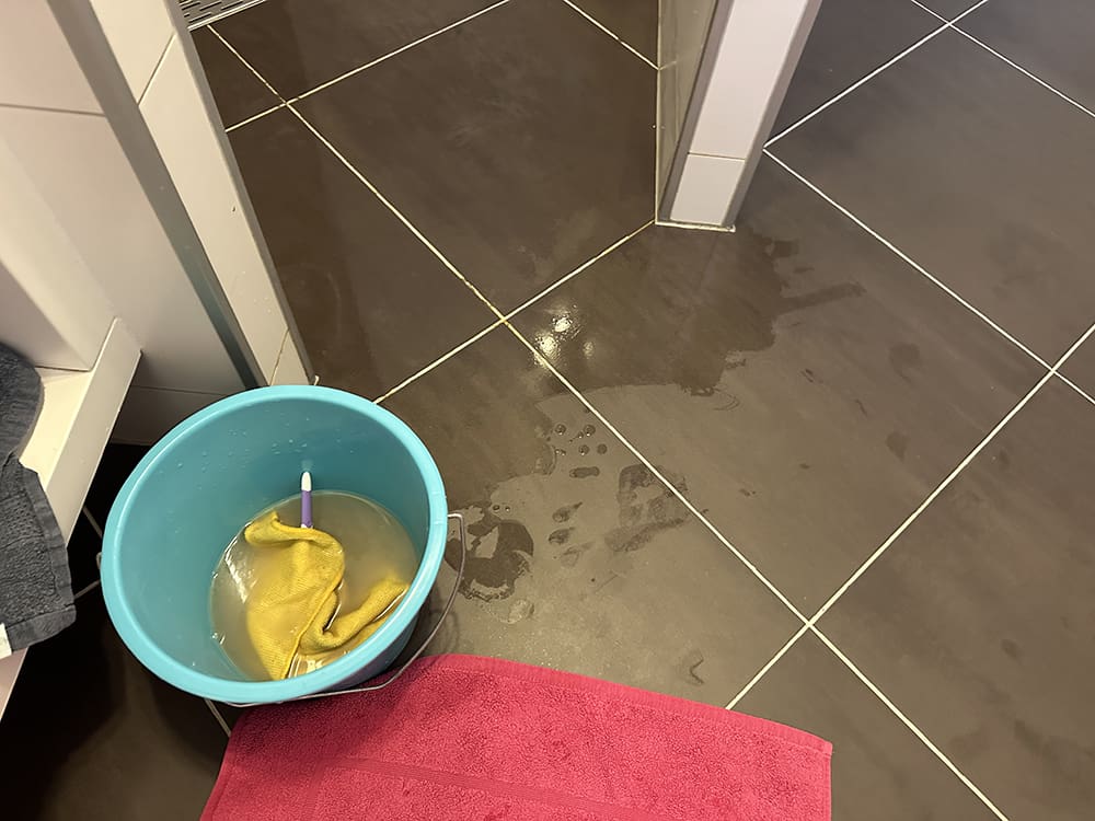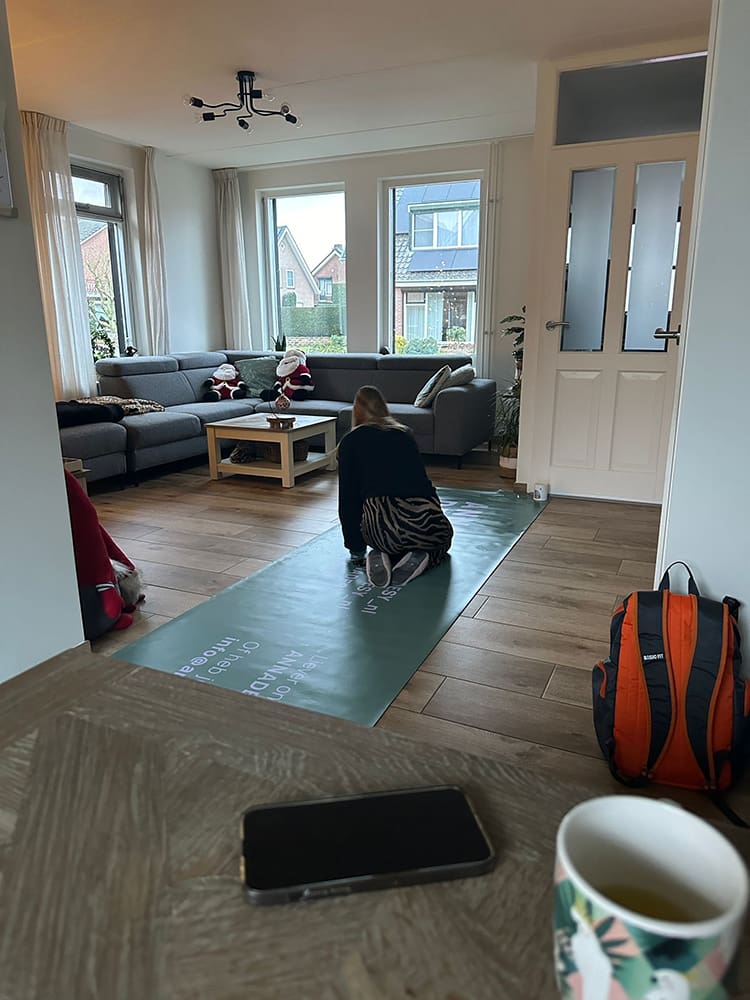 Woensdag (3 januari). Ik heb even gesport en Thijs ging hardlopen. Daarna heb ik de voegen van de douche schoongemaakt.