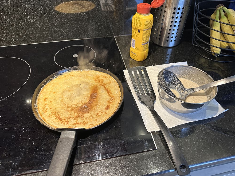 Daarna in de jacuzzi en heb ik pannenkoekjes als lunch gemaakt. Het meel moest op, haha.