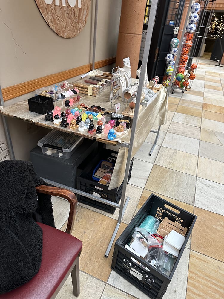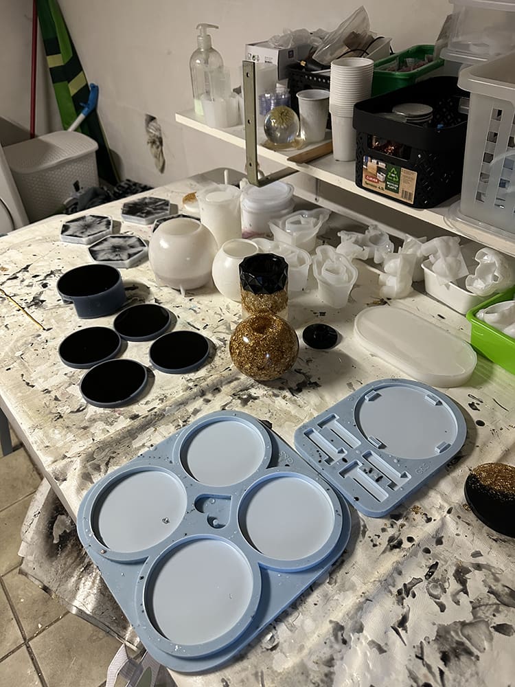 Daarna ging ik met moeders aan de slag met de epoxy. Ik filmde wat dingen die we gingen gieten.