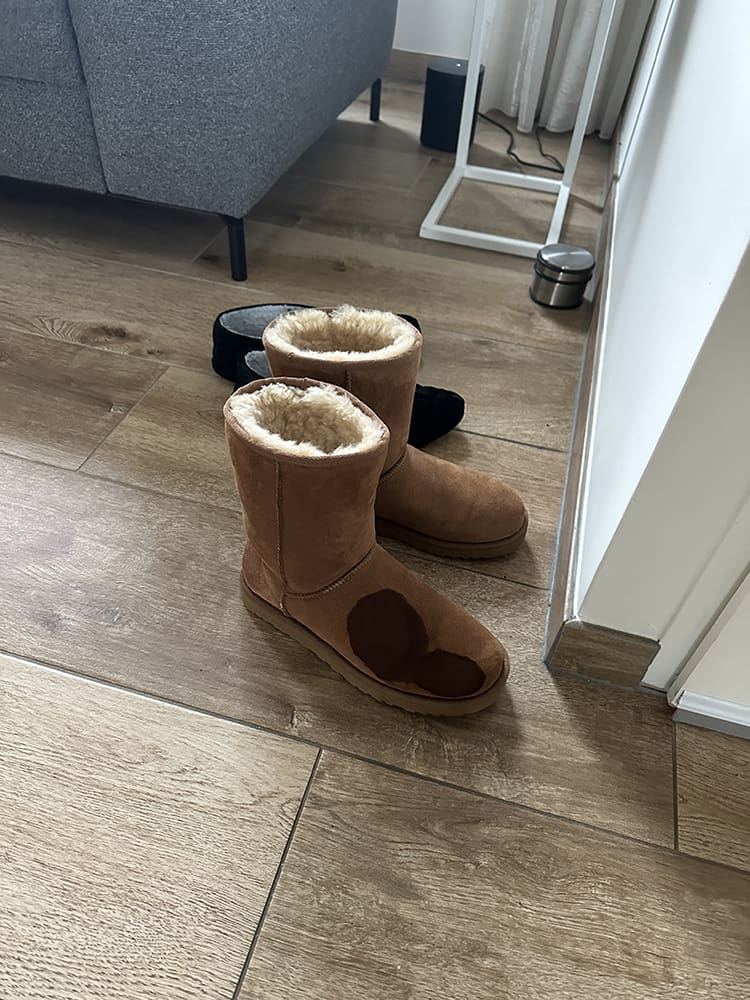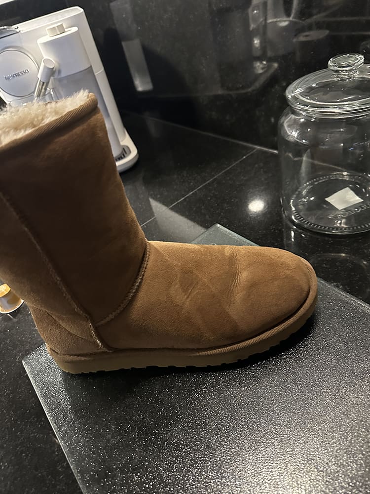 Vrijdag (5 januari). Een poging om mijn Uggs nog schoon te krijgen met een beetje afwasmiddel… Ik ga duimen.
