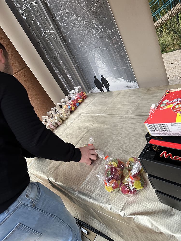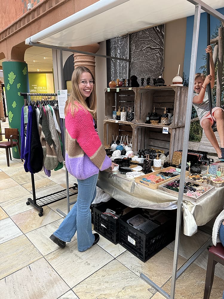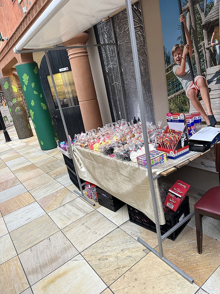 Na de lunch zijn Thijs en ik weer naar Landal Stroombroek gereden. Vanwege een afzegging hebben wij een plekje op de kraam ingevuld. We hebben dit keer onze snoepjes mee.