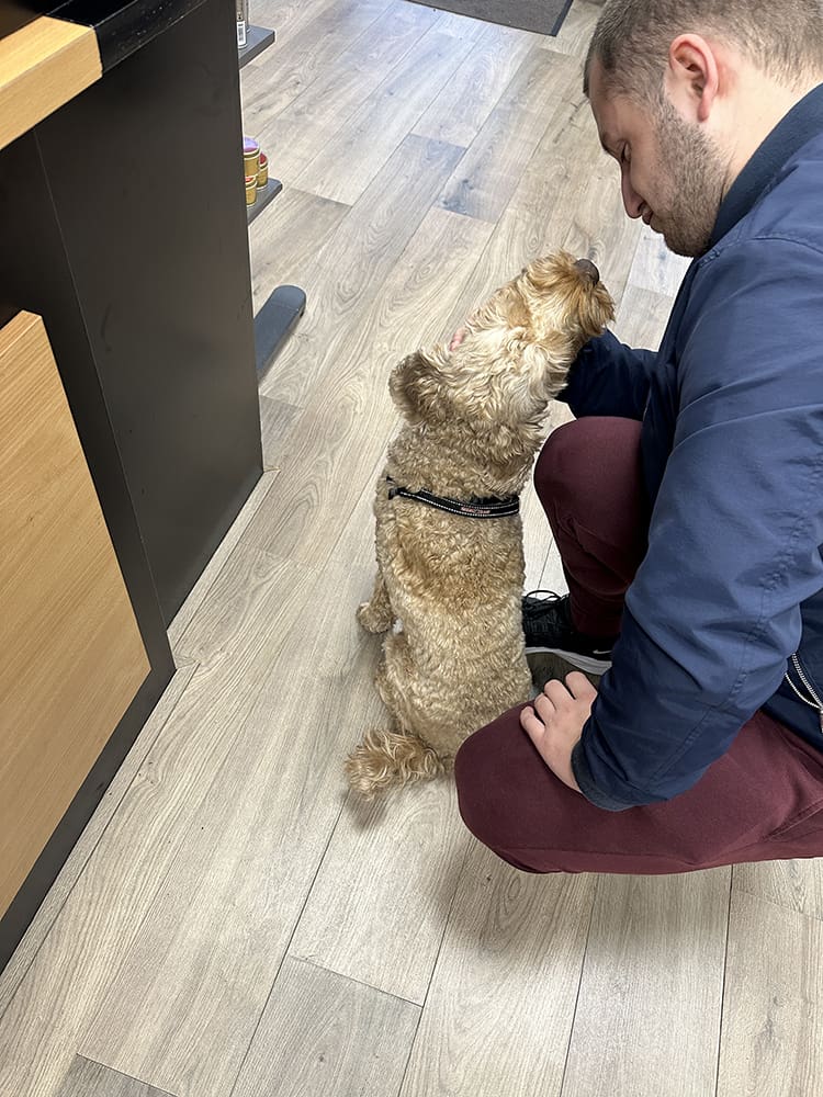 Daarna hebben we mijn Uggs weggebracht. Ik heb de vlek na mijn idee alleen maar groter gemaakt. Ik zit er niet meer aan. In de winkel was trouwens een vet cute hondje.