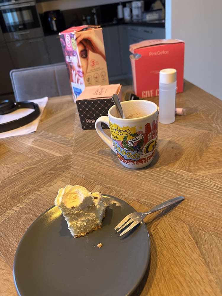 Zondag (7 januari). Ik heb de was gedaan, nog een stukje taart gegeten met Thijs samen en daarna mijn nagels gedaan.