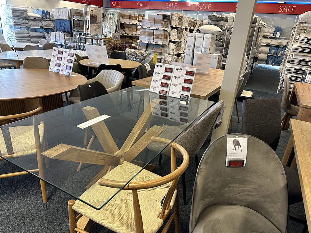 Heel even bij de Jysk kijken voor een kleed. Daar was niet zo veel. De eetkamerstoelen waren daar wel leuk. Maar eerst het kleed. Dan kan ik thuis verder kijken wat voor kleur stoelen ik er dan bij wil.
