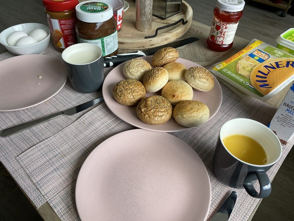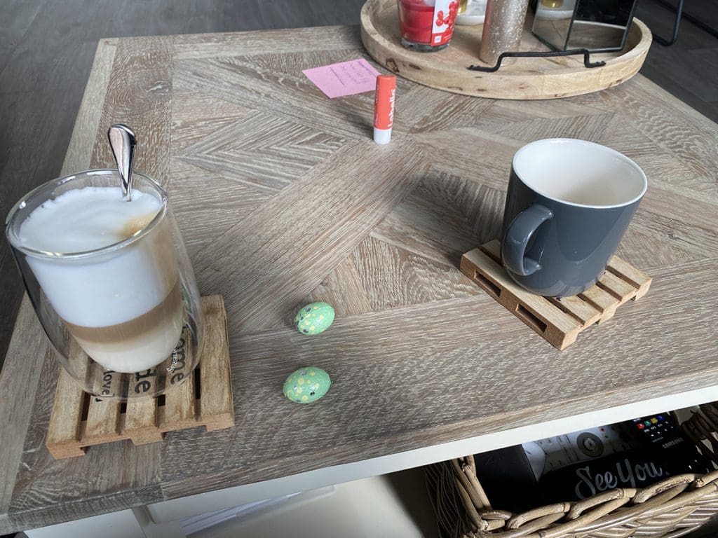 Thijs kwam zijn pauze thuis maken. Gezellig! Koffie drinken.