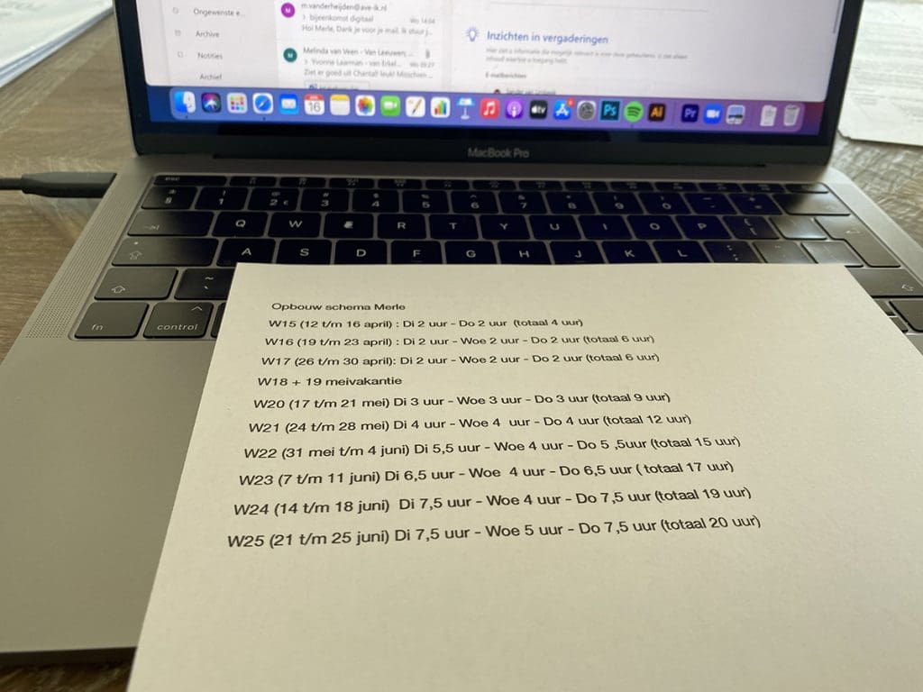 Vrijdag (16 april). Ik had een online teamafspraak met mijn directeur om mijn opbouwschema te bespreken en nog wat andere dingen. Het was een erg fijn gesprek.