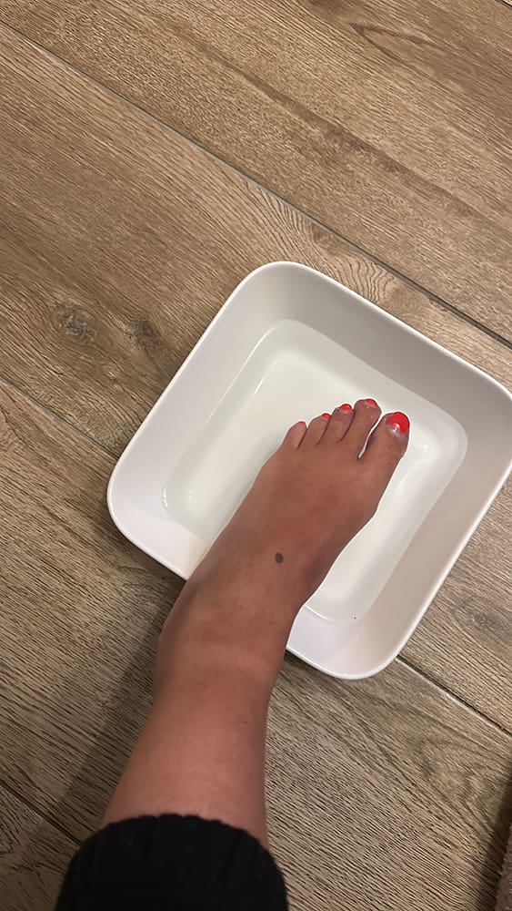Ik heb sinds ik terug ben van Bonaire een raar wondje aan mijn middelste teen zitten. Het lijkt wel een ontsteking of iets. Ik moest een badje met zout nemen voor mijn voet.