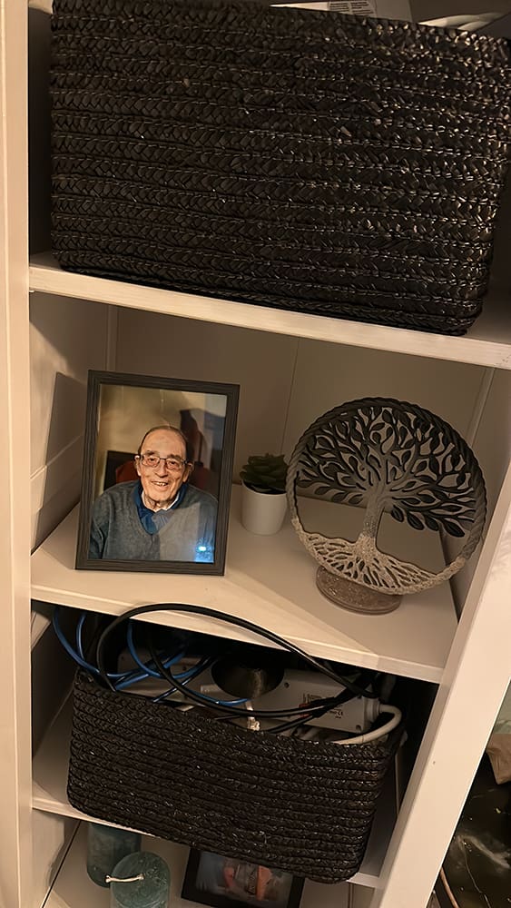 De levensboom met as van mijn opa is ook klaar. Super mooi gemaakt mama! Hij staat mooi naast de foto van opa.