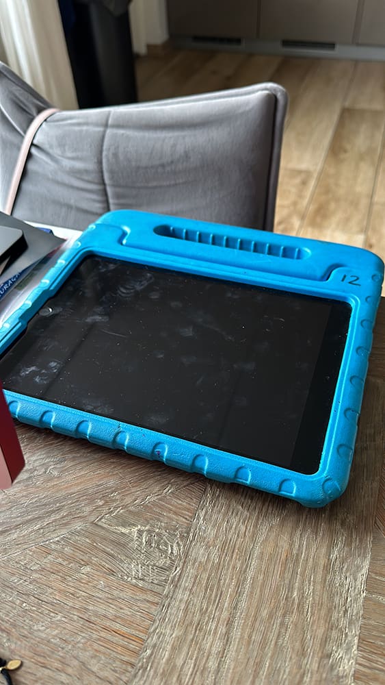 Maandag (26 februari). Na mijn ochtend werken op school kwam ik thuis met een i-Pad van school, haha. We weten niet wat de kids ermee gedaan hebben, maar het scherm loopt vast. Gelukkig heb ik Thijs die dit kan fixen.