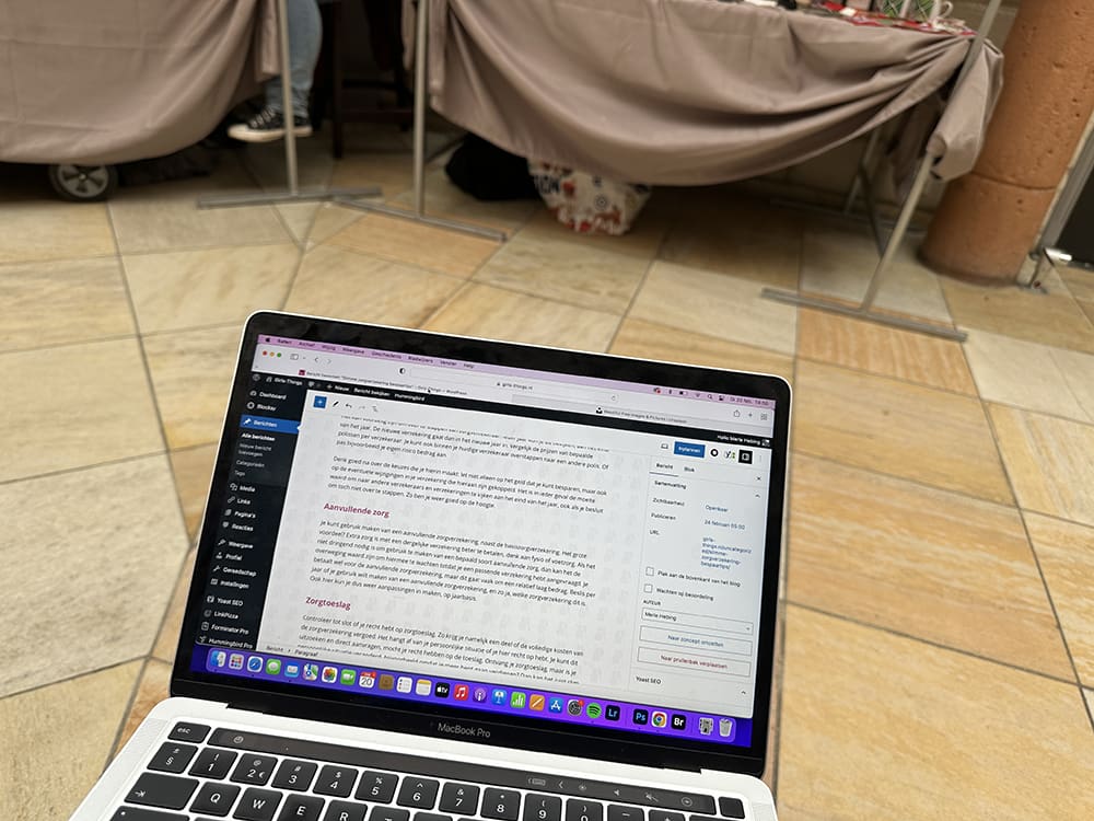 En beide hadden onze laptops mee. Daar vermaken we ons ook mee.
