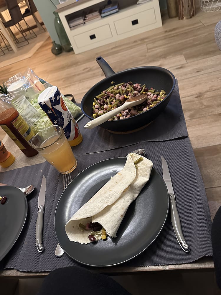 Ik ging douchen en Thijs had lekkere wraps gemaakt.