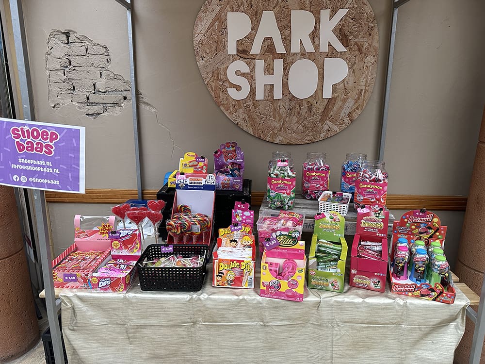 Donderdag (22 februari). Na school was het weer mini markt tijd op Landal. Dit keer stond ik er met Snoepbaas. Thijs stond er ook. Gezellig samen.