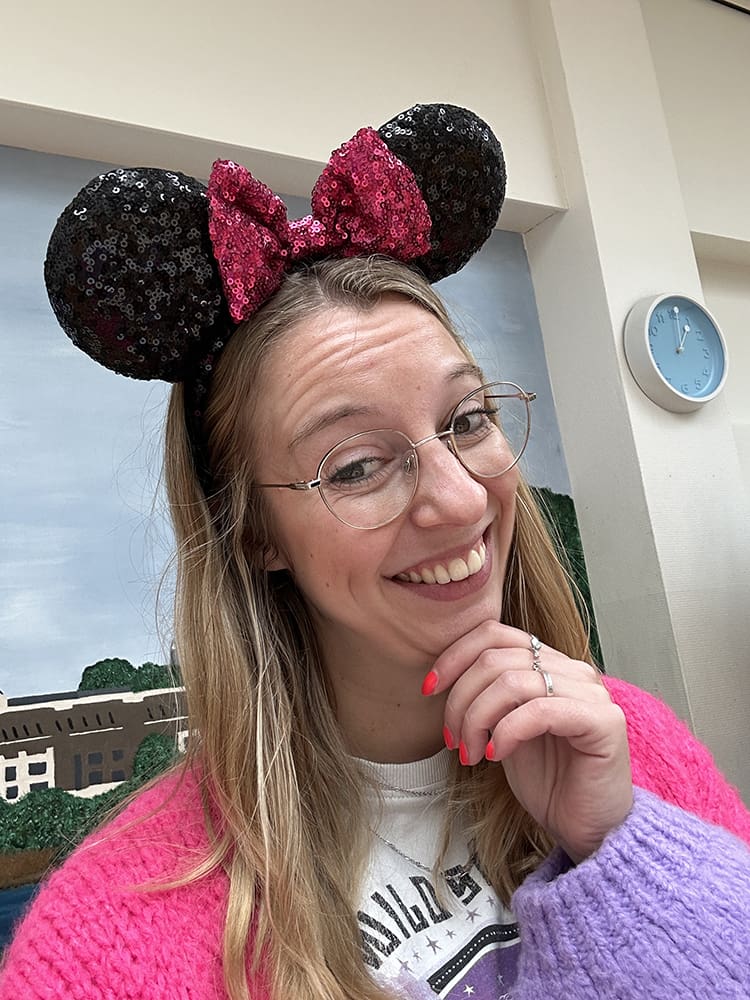 Donderdag (8 februari). Het was ‘Gekke harendag’ op school. De hele ochtend liep ik met deze oortjes op.