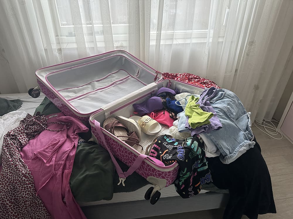 Toen ik thuis kwam heb ik wat schoongemaakt en daarna kon ik mijn koffer inpakken.