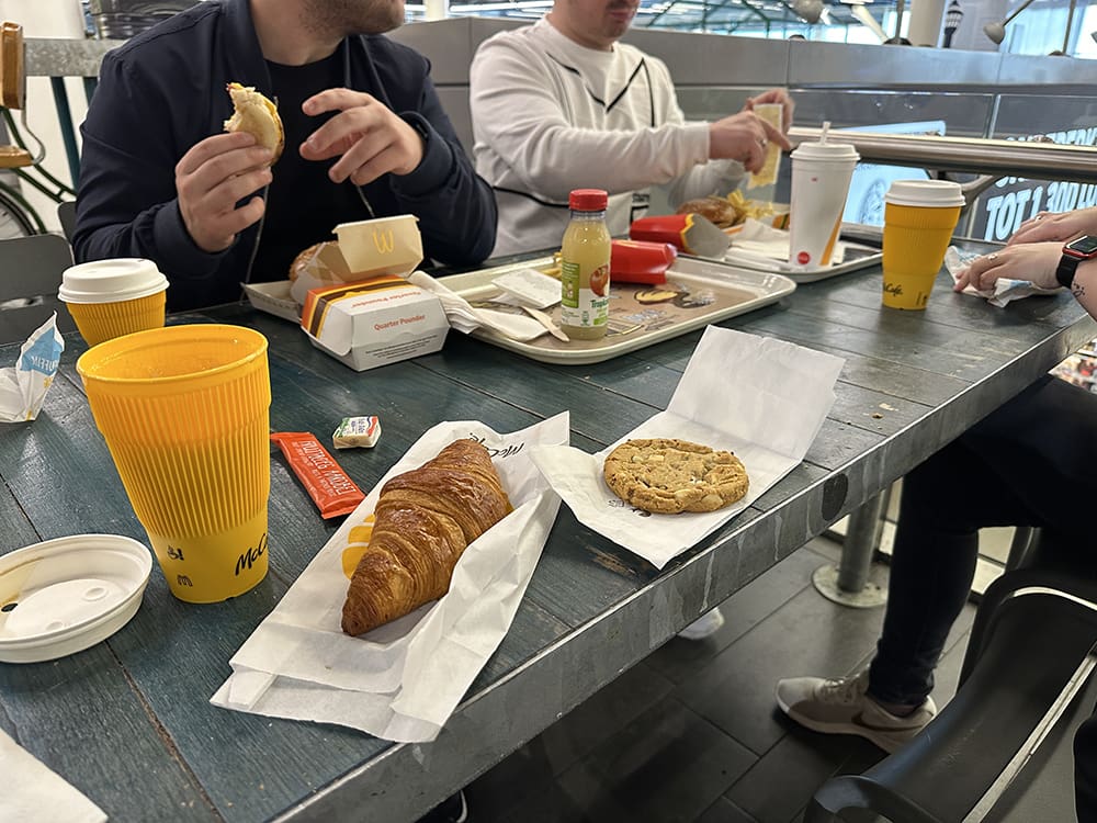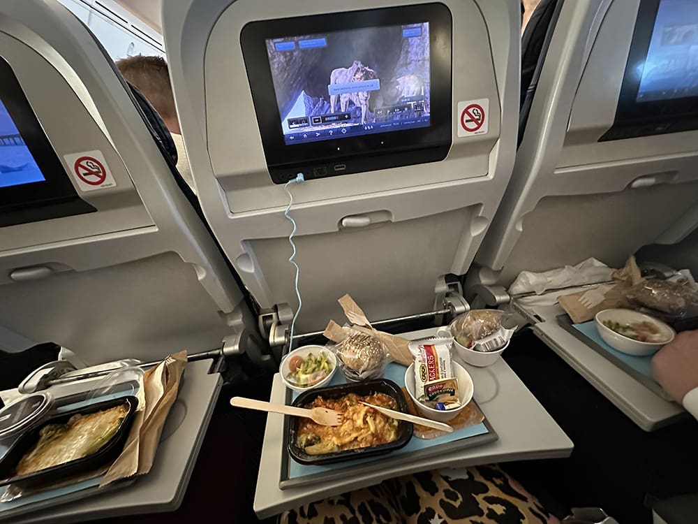 De auto parkeren, koffers inchecken en de douane gingen best vlot. Daarna was het tijd voor lekker eten.