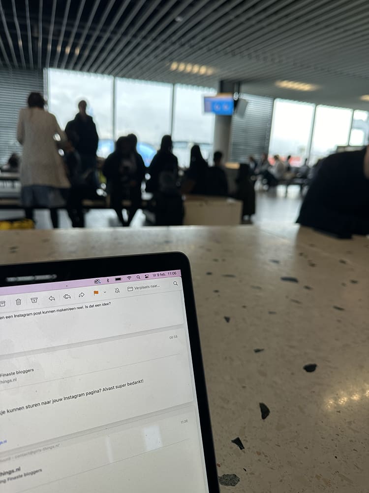 Bij de Gate moesten we nog even wachten. Nog snel wat mailtjes beantwoorden.