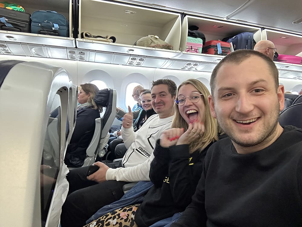 Vrijdag (9 februari). We gaan op vakantie! Op naar Bonaire. Rond kwart over 7 waren we al bij Kim en Robin. Op naar Schiphol.
