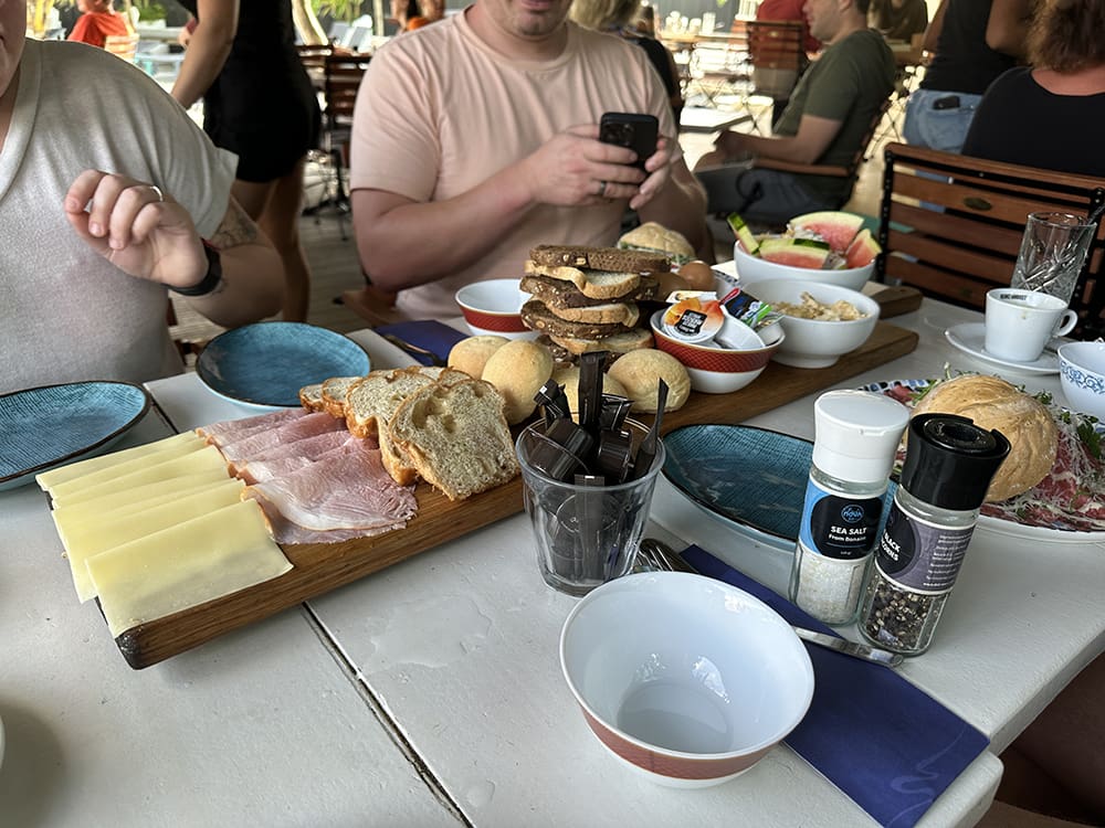 Zondag (11 februari). We beginnen de dag weer met een lekker ontbijt. Deze plank konden we met ons vieren delen.