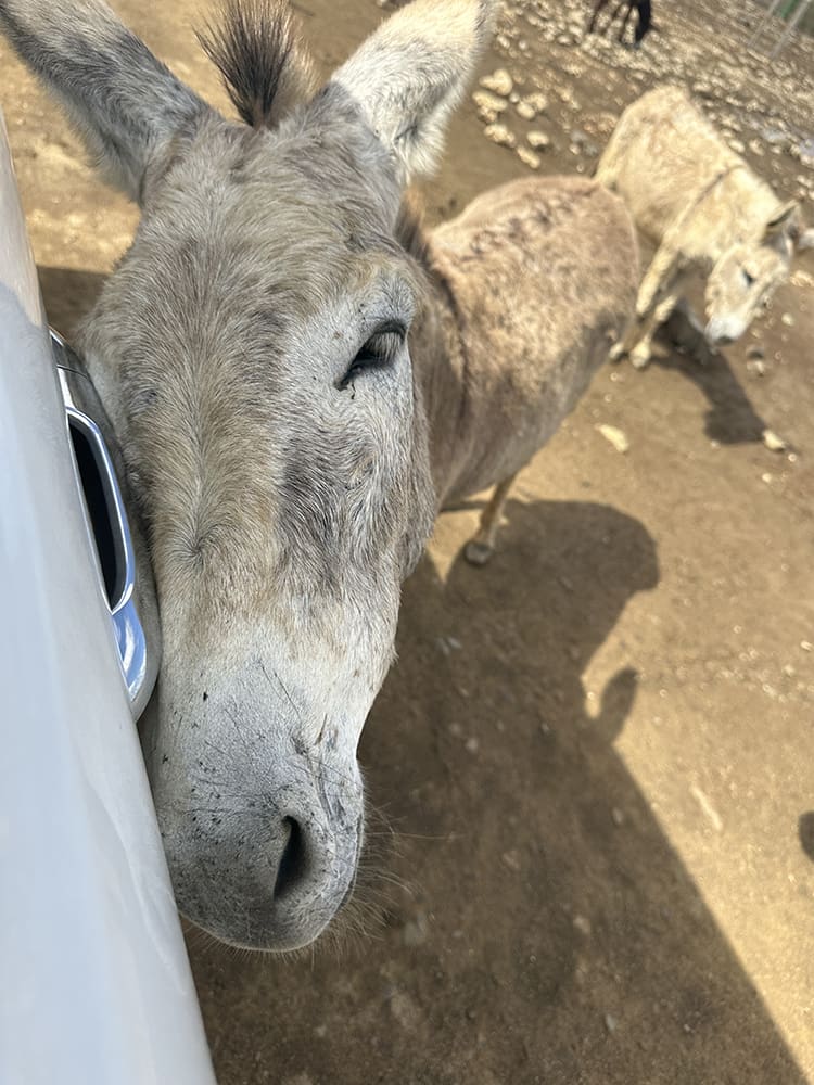 Maar al gauw zijn we eruit gegaan. De ezeltjes gaan ook niet echt aan de kant voor de auto, haha. We moesten zelf plek maken.