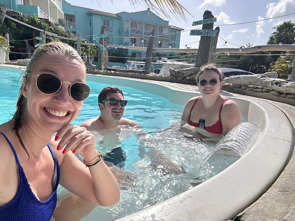 Daarna reden we terug naar ons hotel en zijn we het zwembad in gegaan. Het zout eraf spoelen.