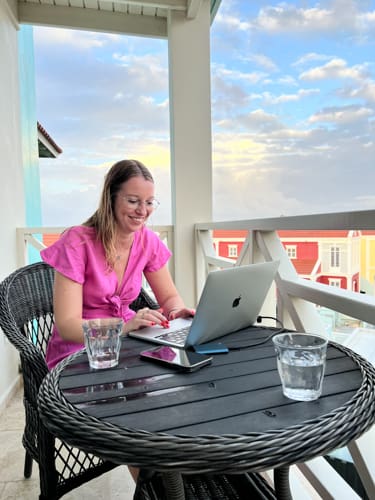 Douchen en daarna op het balkon van Kim en Robin even wat achter de laptop doen.