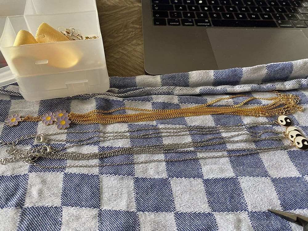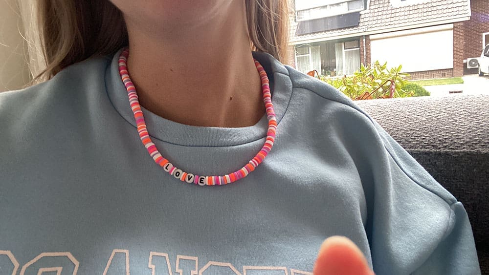 Na het eten experimenten met nieuwe sieraden. Een leuke ketting al zeg ik het zelf.