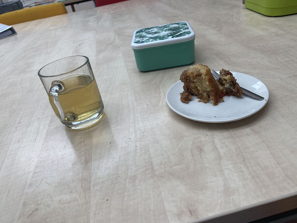 Donderdag (7 juli). Een ochtend werken op school. Er was een lekker taartje van een collega die afscheid nam.