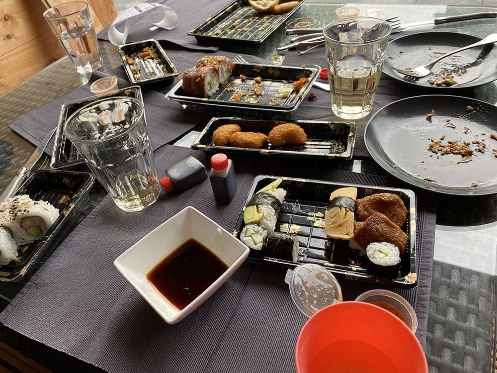 Yes, eindelijk sushi. We hadden erge trek. Veel gelachen onder het eten en blij dat alles goed is met Jannes.