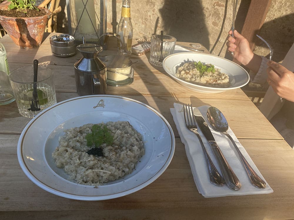 Beide een risotto als hoofdgerecht. En daarna een limoncello toetje gedeeld. Ondertussen weer veel gelachen samen.