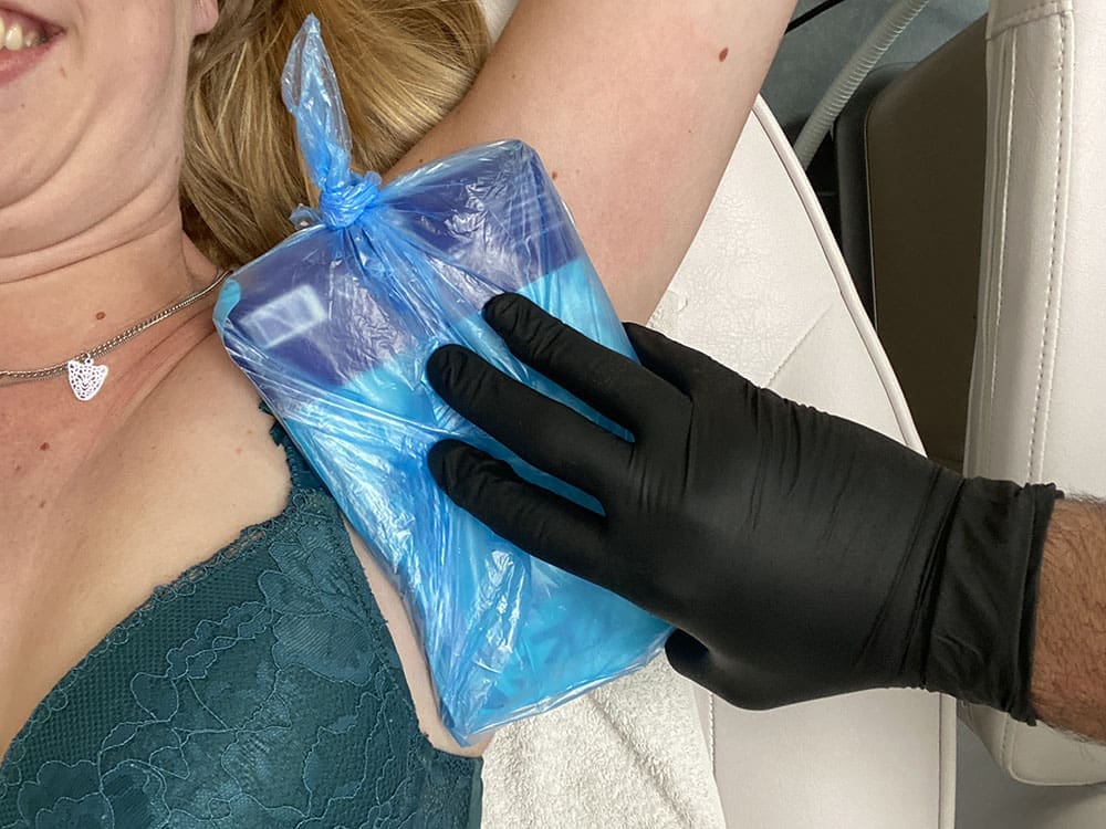 Donderdag (12 mei). Ik had een afspraak bij Arioque. Mijn benen laseren voor de tweede keer. Die gaan trouwens veel sneller dan mijn oksels. Verschilt per mens zegt Arioque. Mijn oksels werden met een iets hogere dosering gedaan. Eerst koelen zodat je de laser minder voelt.
