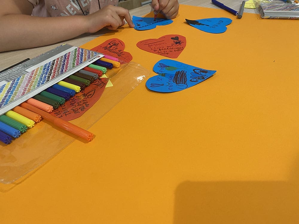 Ik maakte met de kinderen een cadeautje voor de juf. Ze is de dag erna jarig.
