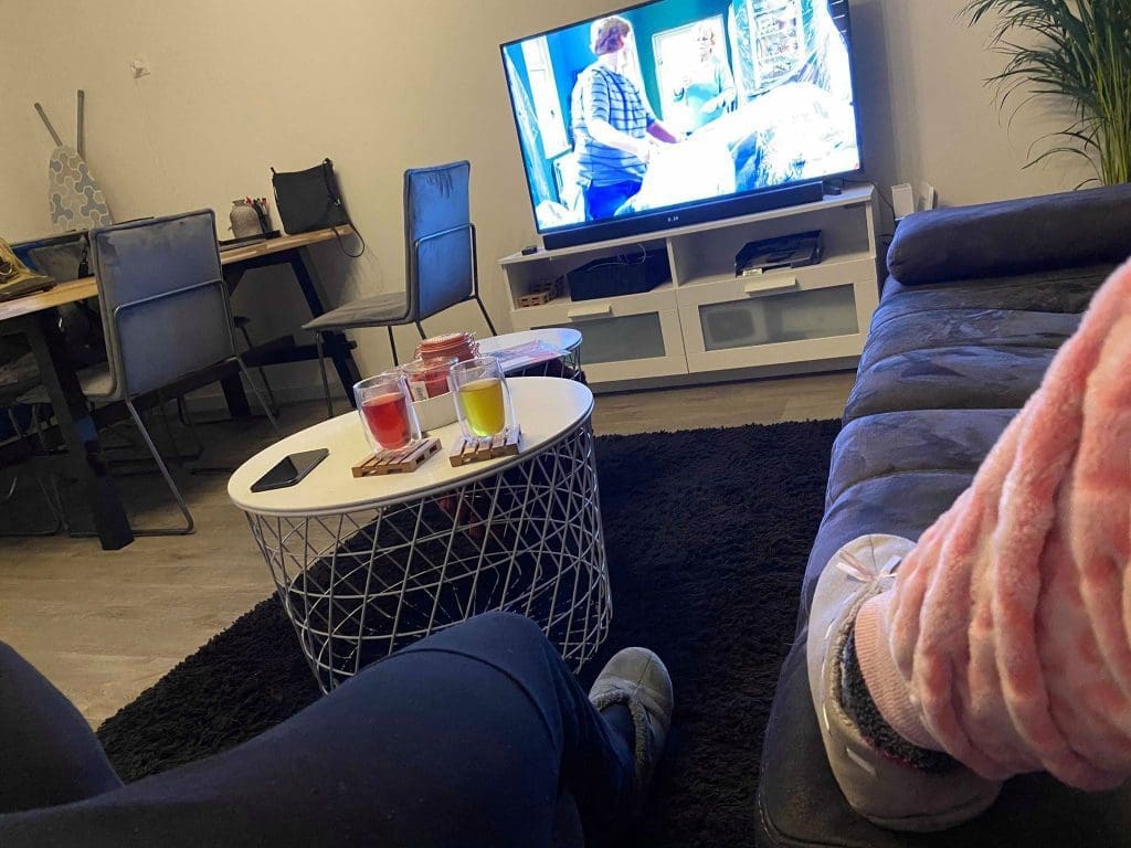 Na het eten heb ik lekker gedoucht en plofte ik op de bank.