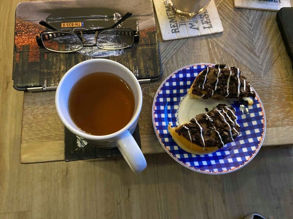 En in de avond nog een kop thee met een donut!