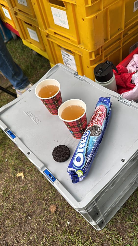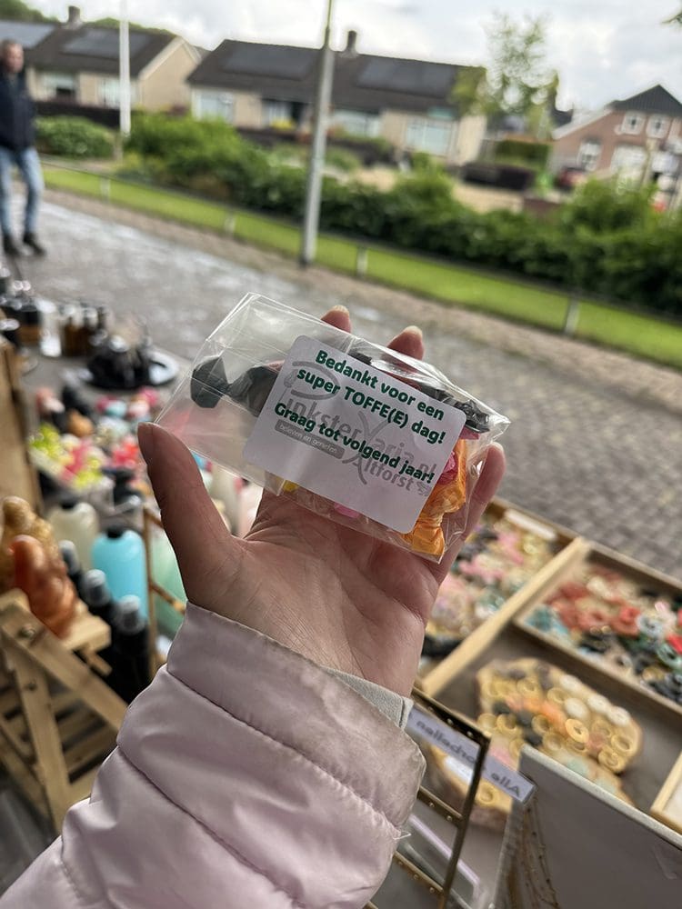 In de middag werd het droger en kwamen er meer mensen. Hebben toen best lekker verkocht. En kijk wat lief, van de organisatie.